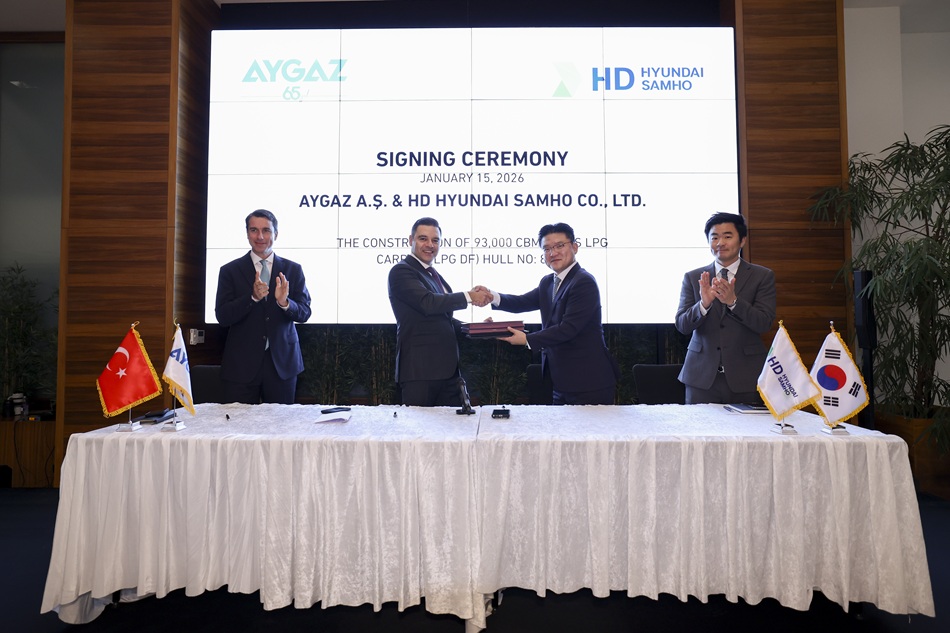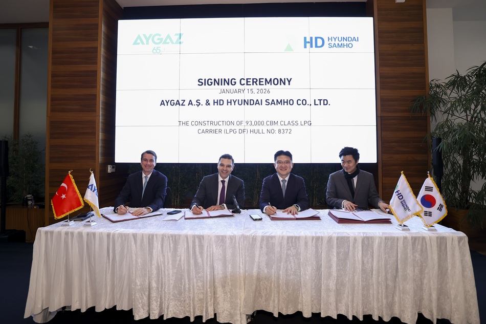 Hyundai Heavy Industries ile gerçekleştirilen inşa sözleşmesi kapsamında, Aygaz Genel Müdürü Melih Poyraz, Aygaz Genel Müdür Yardımcısı Gökhan Dizemen ile Hyundai Heavy Industries’i temsilen Hyoung Won Hahm ve Jun Park’ın katıldığı bir imza töreni düzenlendi.